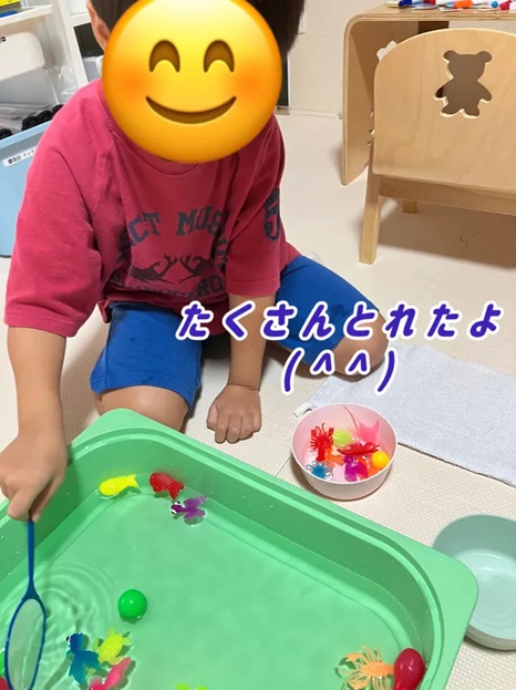 5歳のお友達は水をグルグル回して難易度を高くしたり、一気に何匹とれるかチャレンジしたり、自らの頭で考え工夫して楽しまれていました😄