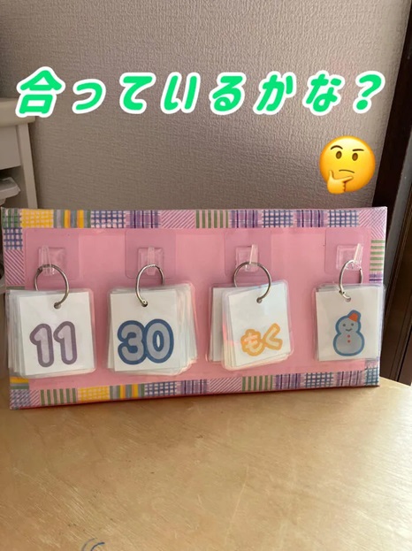 先日のセラピーでは年長のお友達にはあえて違うカードを示し、正しいものに変えてもらう作業にチャレンジしてもらいました。「きょうは9がつ19にちだよ。」「ゆきじゃないよ。」と楽しみながら取り組むことが出来ました。