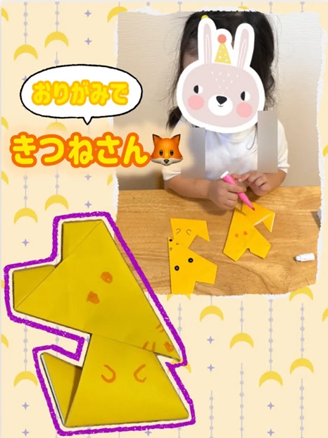 この日は年少さんのおともだちと、折り紙でキツネさんを作りました!