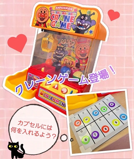 このクレーンゲームには、アンパンマンのキャラクターたちのカプセルがついていて、このカプセルの中にいろいろな物が入れられます👀