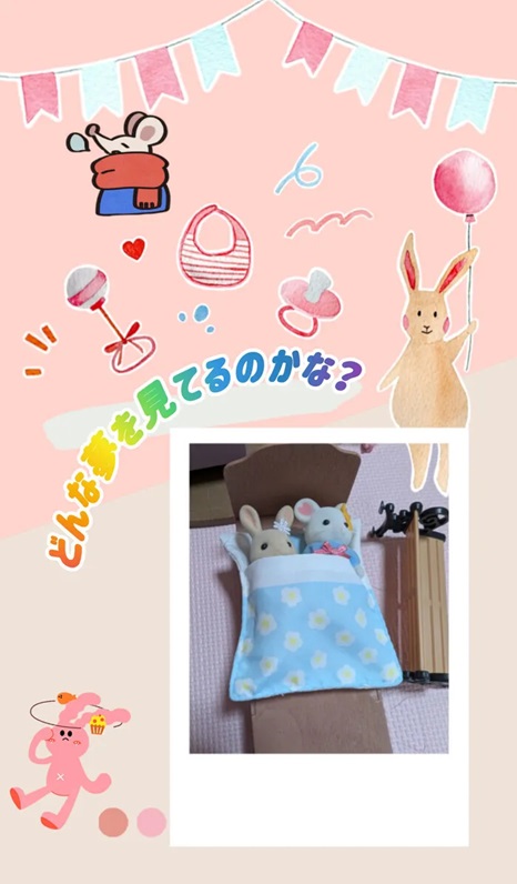ベビーカーにお人形を乗せてお散歩したり、お散歩から帰った後はティータイムやお昼寝の時間を設定して様々なごっこ遊びをして楽しみました。