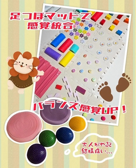 センサリーマットや足つぼボールなどで感覚刺激を入れ、足指を育てていきます💪