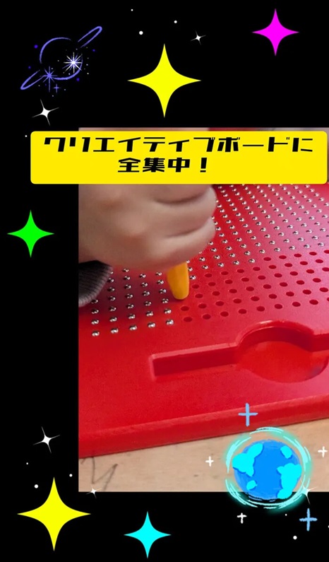 このおもちゃはボードの穴にしっかりペンを押さないと金属球が出てこないので、微細運動や、集中力が問われるおもちゃです😯🙀