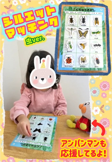 今日は、虫が大好きなおともだちと一緒に、「シルエットマッチング」を行いました🐞