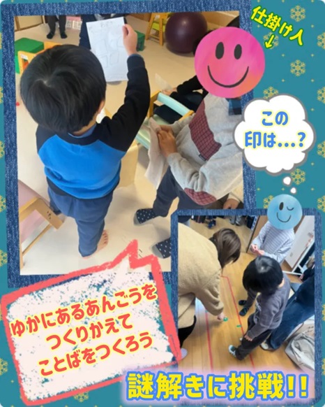 「ゆかにあるあんごうをつくりかえてことばをつくろう」