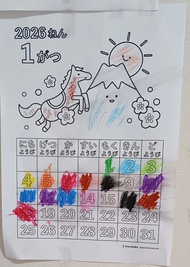 カレンダーは数字や曜日が書かれているので、数やひらがなを学ぶことにもつながります。ご家庭でも有効に活用してみて下さい🤗