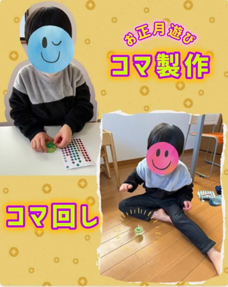 先生とコマ回し対決をしたりして、思う存分お正月遊びを楽しみました🎵