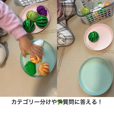 「果物」「野菜」というカテゴリーを意識しながら分けることで、言葉の理解や概念形成につながります☝️