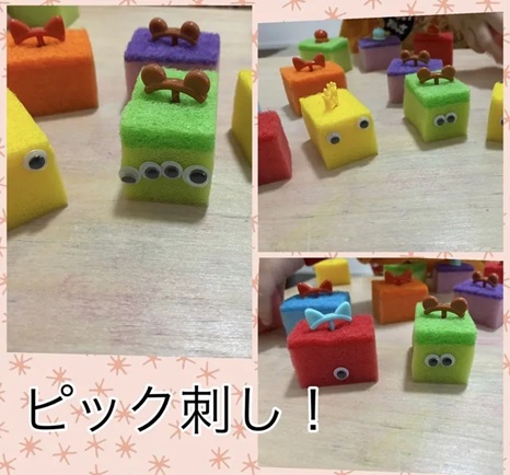 モンスターのスポンジの穴を見つけて、ピックをさしていく微細活動に取り組みました🖐️