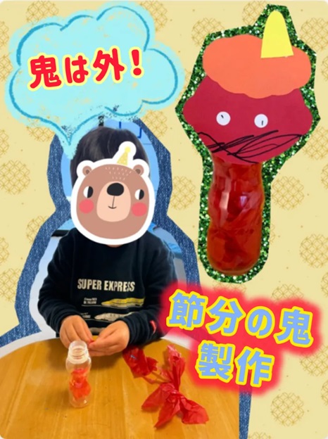 昨日は「鬼のお面」の製作をお伝えしましたが、今日は「鬼の人形」製作の様子をお伝えしたいと思います📣