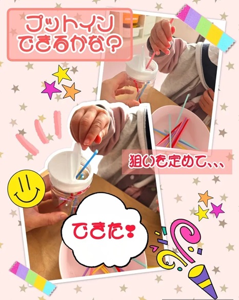 プットインとは、穴の開いた容器にコインやビー玉、ストローなどを入れる活動のことを指します。