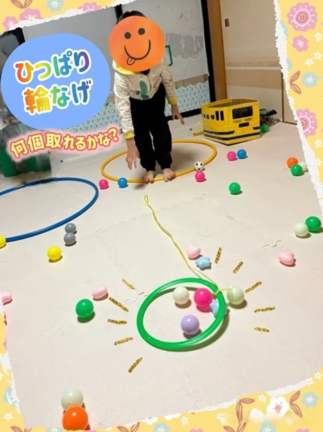 また一緒にひっぱり輪投げで、お片付け競争してみましょうね✊