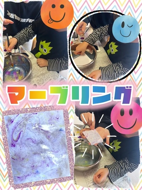 絵の具でどんなことができるかな?と考える中で、「マーブリング」という技法を試してみることにしました✊