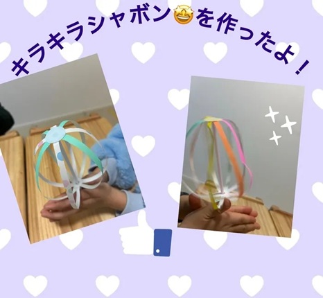 今回は、ストロー・折り紙・シールを使って、キラキラシャボンの製作をしました✨