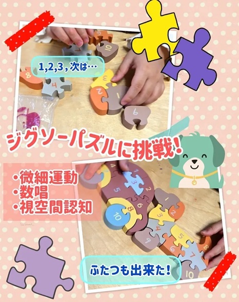 これをきっかけに、パズルの遊び方(お子さまに合わせて遊び方は変えられます!)がお友達は分かったようで、その後はスムーズに楽しくパズルに取り組むことが出来ました👏👏👏