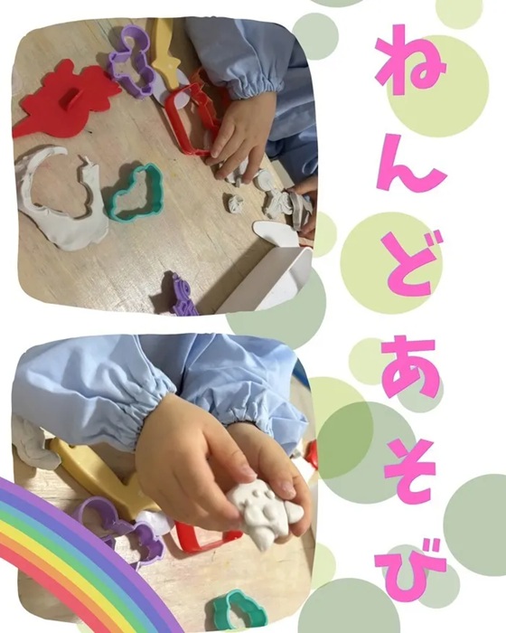 また、型抜きや粘土用のはさみなどの道具も使いながら、「どんな形にしようかな?」と考え、楽しそうに活動する様子が見られました✂️✨