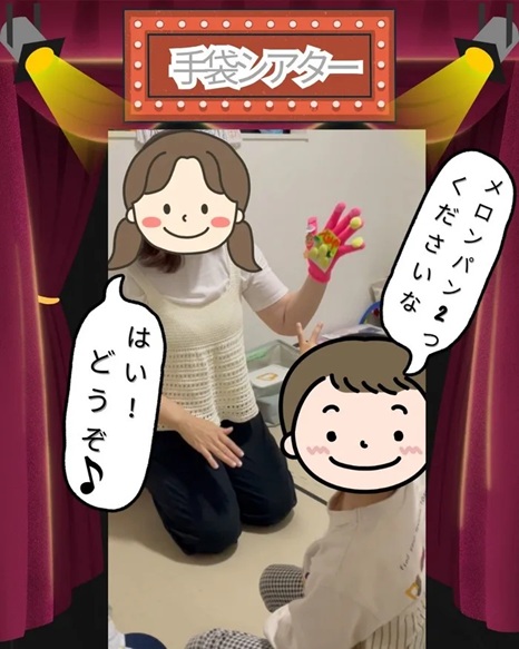 取り出したメロンパンをシアターに戻す場面でも、楽しみながら繰り返しやり取りを行うことができていましたよ🌈