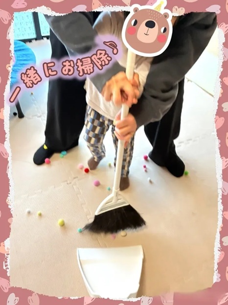 最後は、綺麗になったお部屋で、「気持ちいいね!」「ピカピカになったね✨」とたくさん褒めて、達成感を感じることができるような声掛けをしました😊