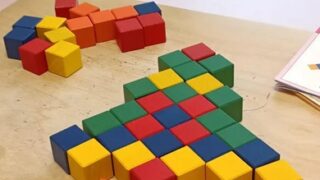 こんにちは!リッツジュニア花です!今日はクリスマスが近いこともあり、年長のお友達にキューブ積み木でクリスマスツリー作りにチャレンジしてもらいました。下から始め、途中で上からに変え、、、積み木を斜めにしたり、横にしたり、、、手伝おうとすると「...