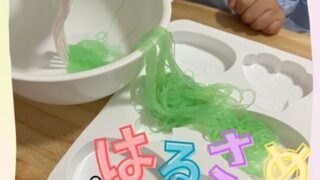 こんにちは!リッツジュニア空です。この日は、やわらかく戻したはるさめを使って感触遊びを行いました🌈手で触ってみると、なんだこれは!?と不思議そうな表情👀恐る恐る指でつまんだり、持ち上げてみたりしながら、はるさめの感触を楽しんでいました✋また...