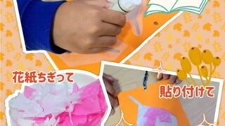 こんにちは!リッツジュニア花です🍂今日は年長のおともだちと11月の製作「しおり」を行いました🎶秋らしく落ち葉の形がくりぬかれた画用紙、トレーシングペーパー、お花紙を使います!お花紙をぐしゃぐしゃに丸めた後、丁寧に広げてから小さくちぎります🤏...