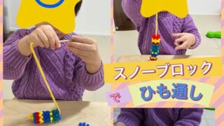 こんにちは!リッツ ジュニア 空です!今回は【ひも通し】の活動をしました✨ひもを持って、小さな穴のあいたスノーブロックに通していきます。穴の位置をよく見て、ひもを先に進めて…通ったら次のブロックへ😊ひとつずつ集中して取り組む姿がとても素敵で...